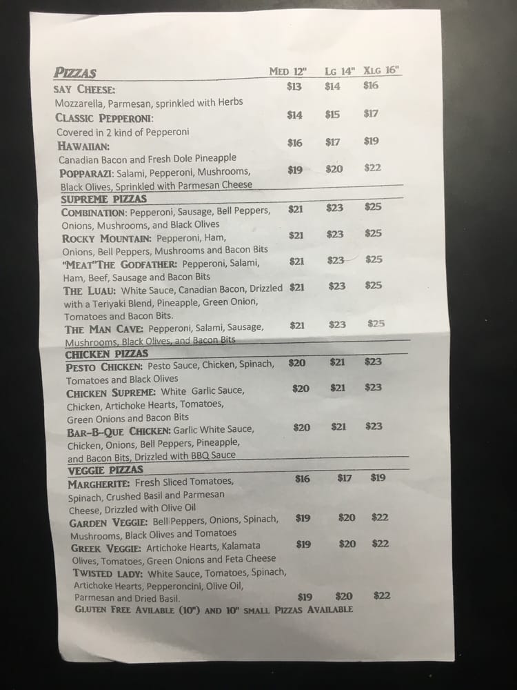 Garlic White Sauce, Mozzarella Cheese, Chicken, Onions, Bell Peppers, Pineapple and Bacon Bits, Drizzled with BBQ Sauce $. $ $ $ $